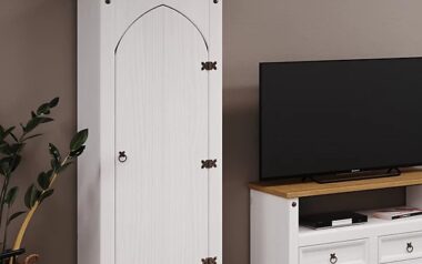 Our Edwardian White Vestry Cupboard has a wonderful gothic style arched doorway with two adjustable shelves inside. All in rustic Mexican styled solid pine. Part of the Edwardian White Collection, this Vestry Cupboard has an ecclesiastical feel to it thanks to the gothic style arch door which is was widely