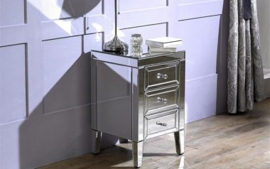 Valentino 3 drawer bedside Features a mirrored finish with bevelled edges and elegant mock crystal handles Dimensions: W 40 x D 40 x H 64 cms You can choose your delivery date and time slot at check out