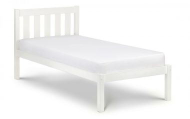 Crafted from solid pine with a surf white lacquer Suitable for a wide range or comtemporary and traditional decor Featuring a solid slatted base for a comfortable nights sleep Dimensions: L 201 x W 98 x H 92 cm Our beds can be fitted at your location for an extra