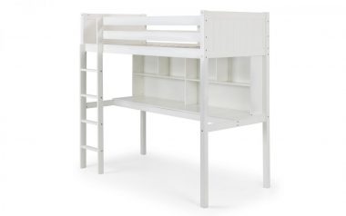 Crafted from Malaysian Hardwood and MDF, the Titanium High sleeper is finished in a white lacquer, matching with any bedroom décor as they grow. Offering a classic design with panelled detailing, this high sleeper features a workstation underneath, complete with shelves and room beneath for extra storage. Robust construction crafted