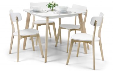 A timeless retro design reflecting the style of the 1950’s. The Cassa Dining Chair has White Lacquered Seat and Back Panels with Limed Oak Effect Legs. Crafted from solid Malaysian hardwood and MDF ensuring long lasting durability. Durable matt white lacquered Seat and back with limed oak effect solid wood