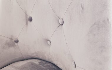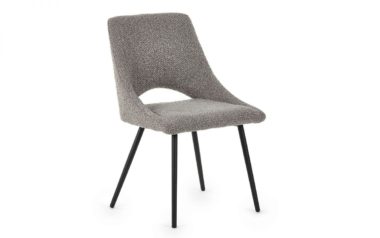 Upholstered in a soft touch luxurious grey velvet fabric, the Vimto Knocker back chair has a metal ring detail on the back along with glamourous deep buttoning and a metal stud trim. Finished with sturdy black lacquered legs, this chair is perfect as a statement standalone or as part of