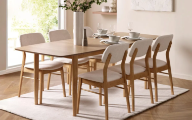 A neat and functional, space saving dining set where the chairs can be folded and stored Inside the table. This dining set is a timeless classic that features a integrated storage drawer, perfect for small spaces with less storage. Available in White, Sonama Oak and Grey Open – 120cm W