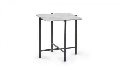 Bring a touch of modern elegance to your home with this compact square side table, featuring a bold black frame and a striking black and white marble-effect top. Designed with a subtle raised lip around the edge, it helps keep drinks, books, or decorative accents securely in place. Perfectly sized