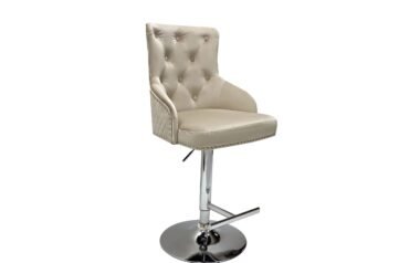 Luxury velvet upholstery with an ergonomic backrest and integrated footrest for enhanced support and a plush seating experience. Available in a range of colours – Navy, Mink, Grey, Pink, Black Height-adjustable design suitable for kitchen islands, counters, and bars; perfect for homes, offices, pubs, cafés, and restaurants. Chic stud