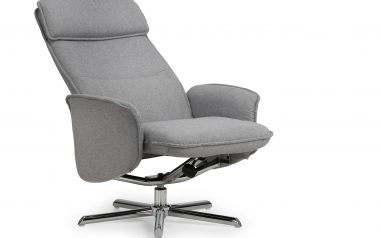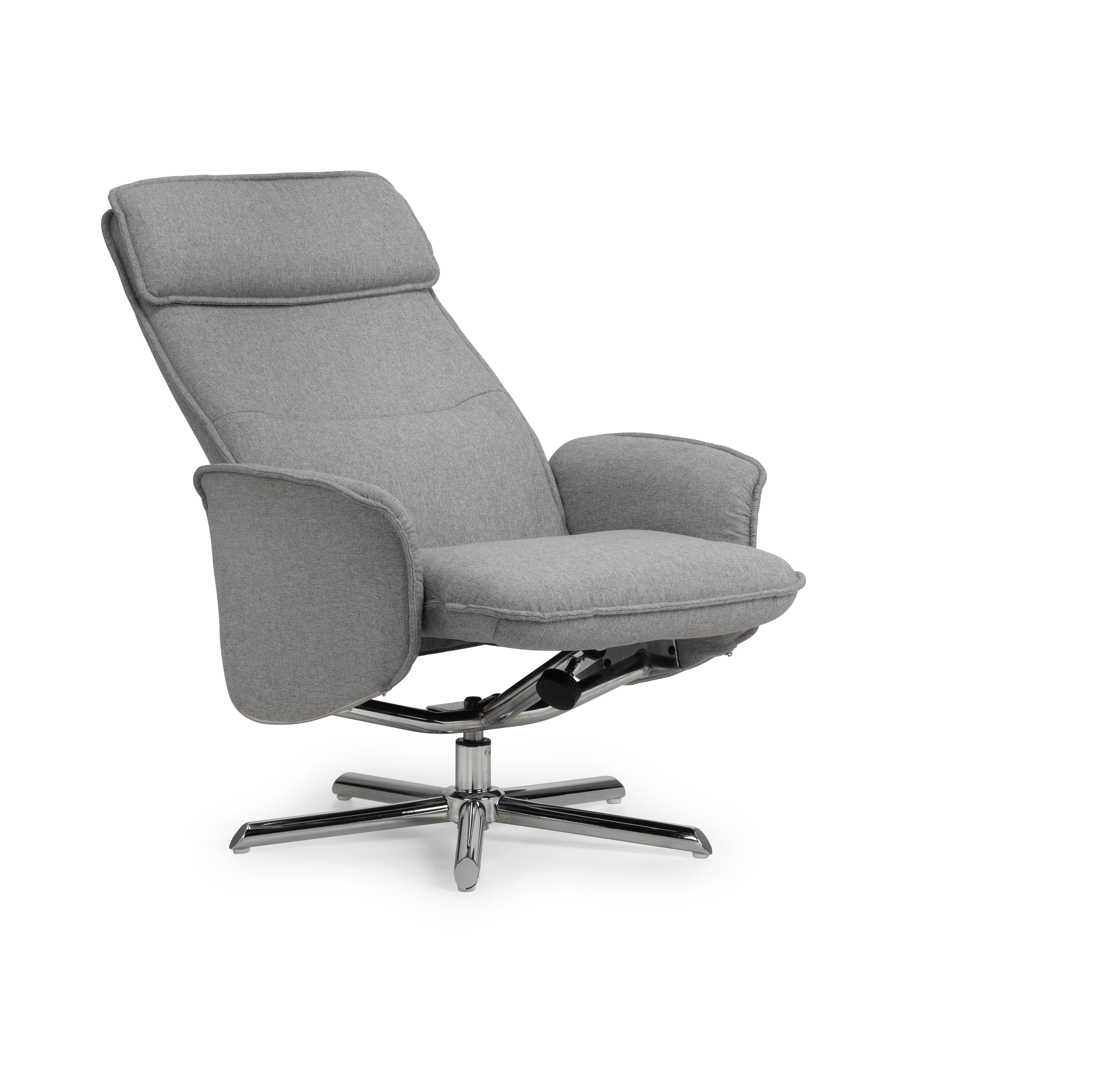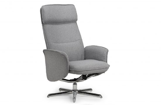 • The Aleena Recliner is beautifully upholstered in grey linen fabric with a stunning chrome base. Featuring a padded headrest and footstool to provide utmost comfort, this modern chair is suitable for a wide range of decor.