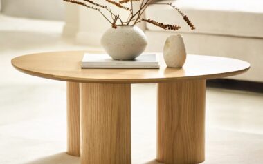 - Bring sculptural elegance and modern calm into your home with this statement coffee table. Its asymmetrical tabletop design breaks away from traditional shapes, creating a striking focal point while still offering plenty of usable surface space. Balanced on three cylindrical legs and beautifully finished in a warm oak effect, it blends artistry with everyday function. Perfect for Scandinavian-inspired interiors, its sleek minimalism shines when styled with books or ceramics for a curated touch. Ideal for both daily living and weekend hosting.