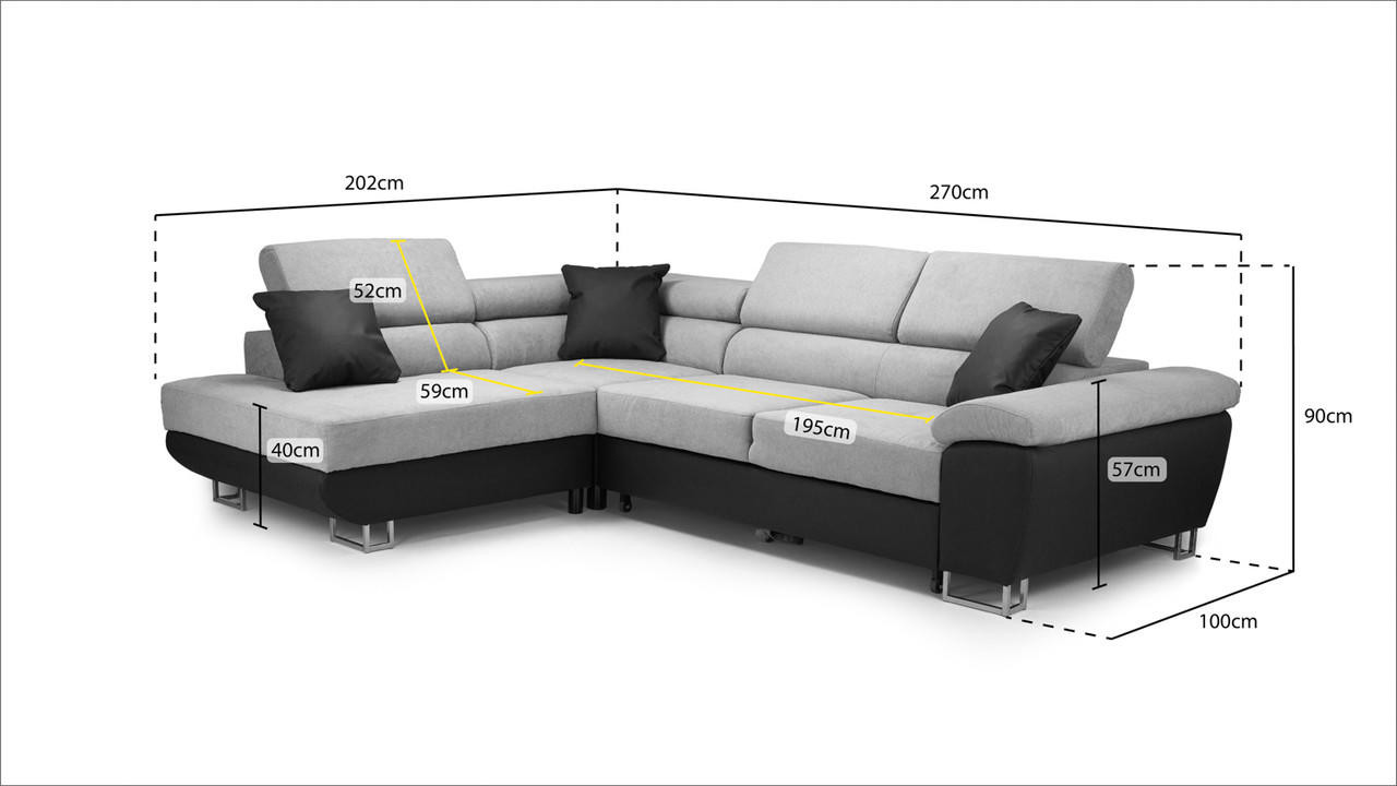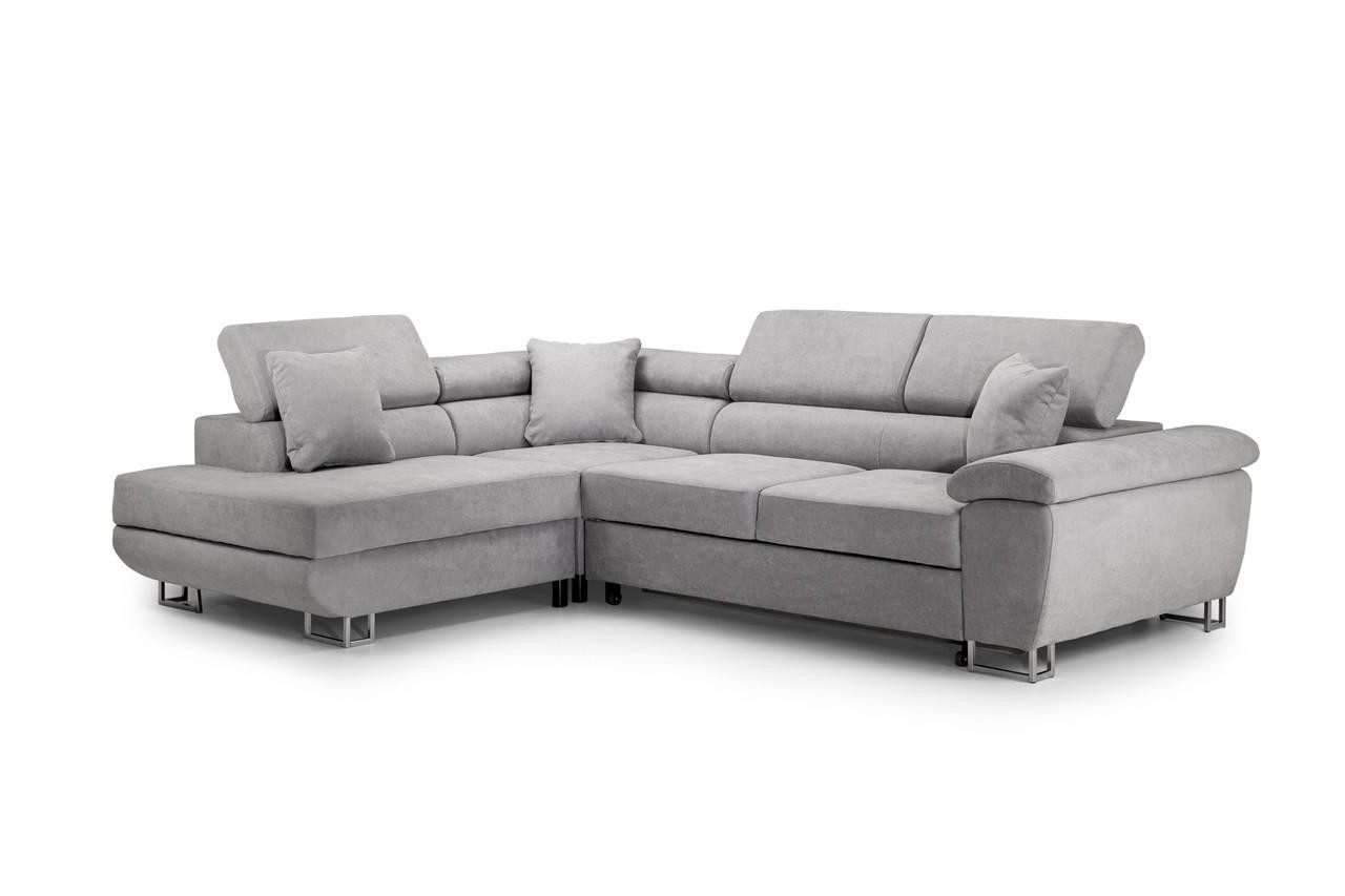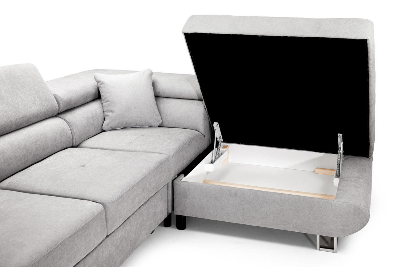 - This stylish, contemporary corner sofa bed also comes complete with storage space and adjustable headrests.