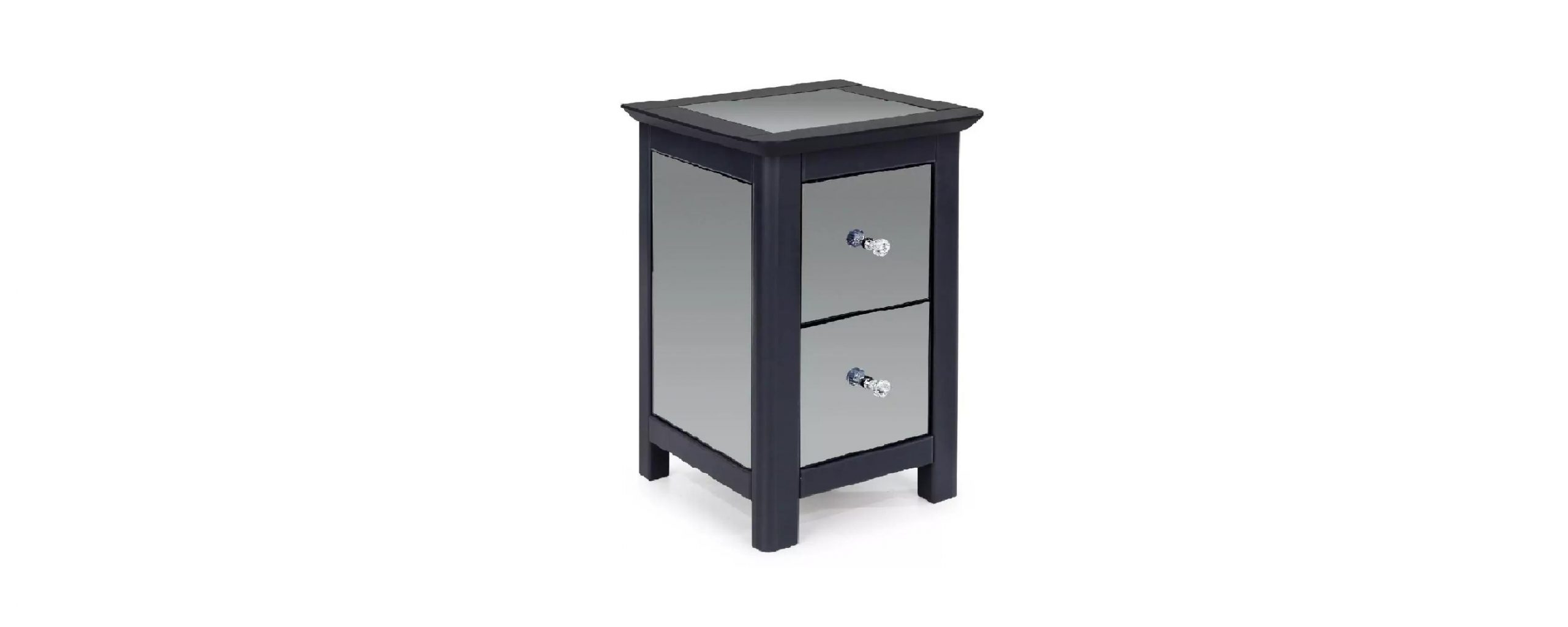 - Trendy Bedside – grey painted wood with tinted black mirror inserts.