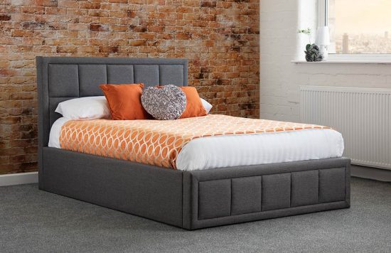 - The Cherry Lift-up Storage Bed has modern, clean lines and is beautifully upholstered in a crisp light grey linen fabric. The bed has a lift-up ottoman frame that is gas powered and creates huge amounts of easily accessible storage space. The Cherry Lift-up bed will add contemporary charm to any bedroom and is the perfect accompaniment to a wide range of bedroom styles. A sprung slatted base ensures supreme comfort and prolonged mattress life.