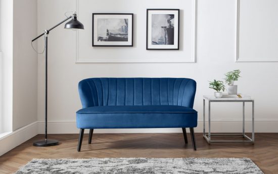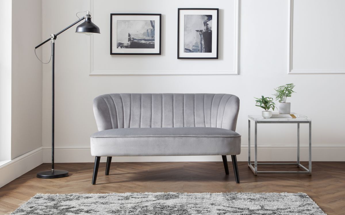 • Excelling in elegance, the gorgeous Coconut 2-Seater is designed with a beautiful, scalloped back in a soft velvet upholstery. Fashioned in the choice of a stunning blue or light grey colourway, this classy 2-seater stands glamorously on black tapered legs, adding a boudoir feel to any room.