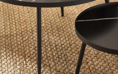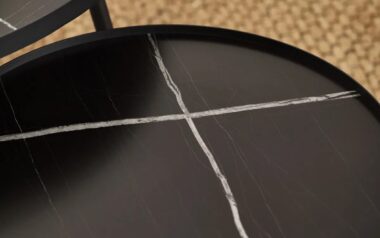 - Add modern elegance to your your home with this set of two nesting coffee tables. Designed with round tops in luxurious black marble-effect finish. Use the two tables together for a layered look or separately to serve drinks, display décor, or keep essentials at hands reach. The slim tapered legs complete the contemporary design, making them an perfect fit for both classic and modern interiors.