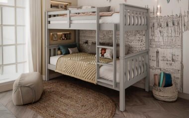 - Central leg support and easyāclimb angled ladder ensure sturdy construction and safe access to the top bunk.