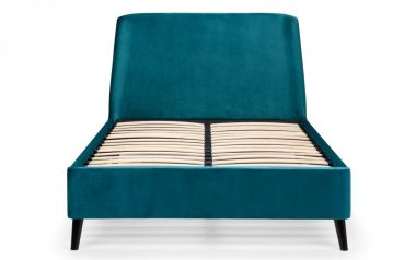 - For a contemporary home this velvet bedframe for style in the chosen bedroom. Featuring a charming headboard with a slight chamfer to the edge of the headboard this beds sophisticated. Made using quality materials like wood and velvet fabric with robustness and gentle to the touch values.