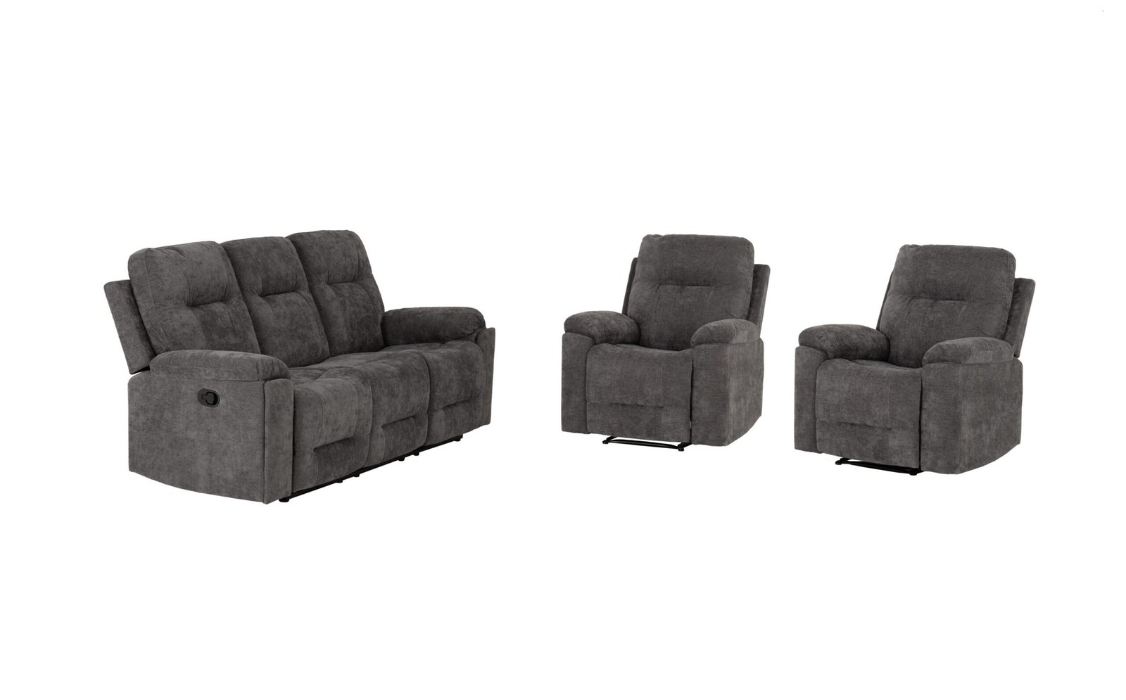 - Manual recliner on each of the three pieces (both ends of the 3-seater, plus each armchair)