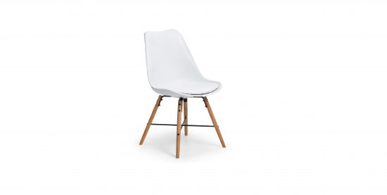 - The Kiwi Dining Chair features a curved design that conforms to the natural curve of the spine, paired with a high-quality padded seat allowing you to reach maximum comfort. Featuring a white, easily-cleaned seat and oak effect legs, with an steel cross bar giving this chair a modern industrial feel. Available in three colour options.