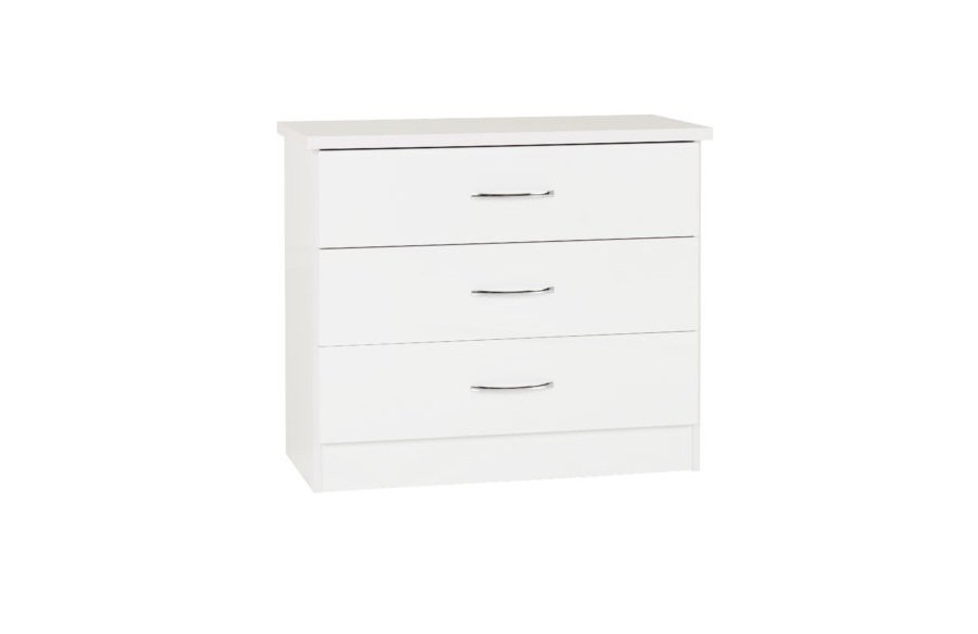 - Sleek whiteāgloss 3ādrawer chest ā ideal for storing clothes, linens, or daily essentials.