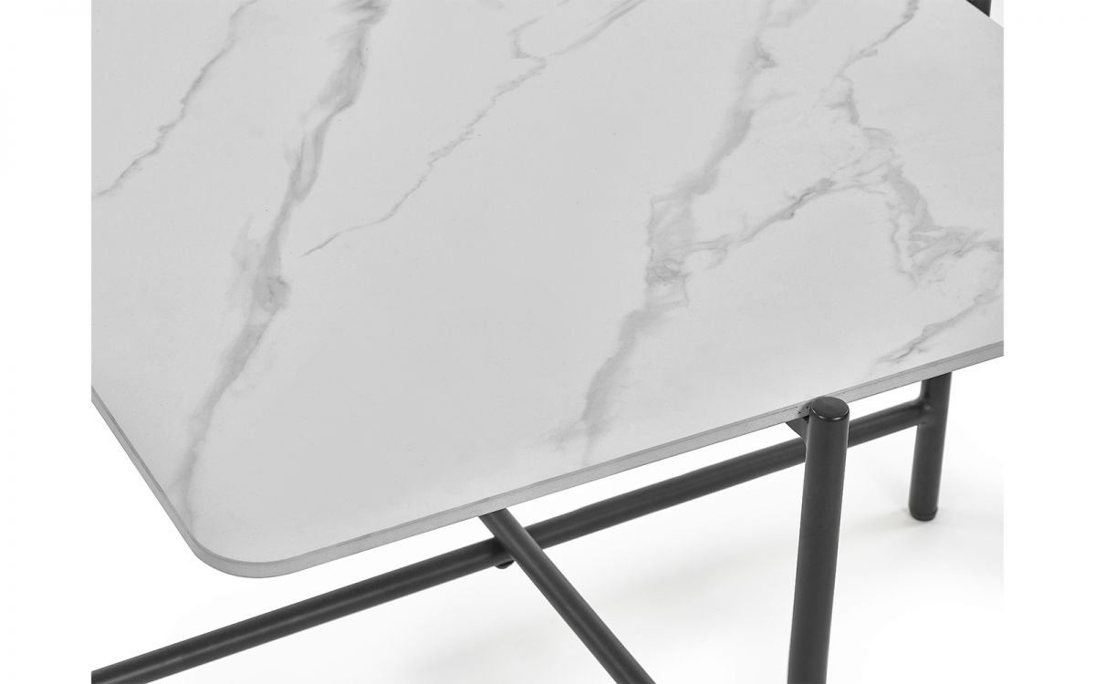 • White marble sintered stone top with a black metal base