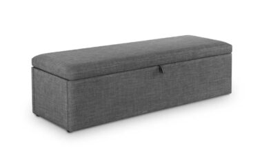 • The Soren Blanket Box is upholstered in a sophisticated slate grey linen fabric and provides a substantial amount of storage for blankets and linen.