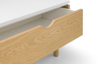 • The Timer Coffee Table offers a functional design with a lift-up mechanism with storage space inside, as well as a pull-out drawer with stunning recessed handles. Finished in a high gloss white and oak with tapered legs, this contemporary coffee table is sure to be the statement piece of any living area.